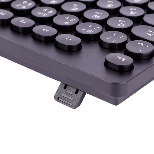 اتصال با سیم از طریق رابط USB، طول کابل 140 سانتی متر با روکشی از جنس پلاستیک، مقاوم در برابر کشش و پارگیامکان تنظیم ارتفاع از طریق پایه تعبیه شده، تعبیه نشانگر LED بر روی بدنه به منظور نمایش وضعیت کارکرد محصولبدنه ساخته شده از جنس پلاستیک با کیفیت مقاوم در برابر آب، ضربه، فشار و سایر آسیب های فیزیکیبرخورداری از 104 عدد کلید فیزیکی بی صدا با حروف فارسی حک شده بر روی آنموفق به کسب استاندارد سلامت و ایمنی محصولات شامل FCC / CE / RoHS