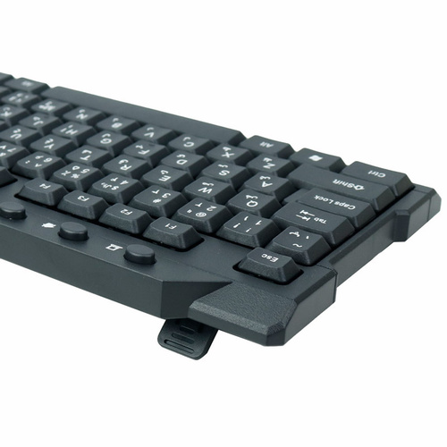 بدنه ای ساخته شده از پلاستیک مرغوب و باکیفیت، مقاومت در برابر رطوبتقابلیت تنظیم ارتفاع، امکان اتصال از طریق رابط USB به طول 120 سانتی مترمجهز به 104 عدد کلید با عمر ضربه پذیری بالا و حروف حک شده فارسی بر روی کیبوردبهره مندی از کلید های میانبر و مولتی مدیا برای دسترسی راحت تر