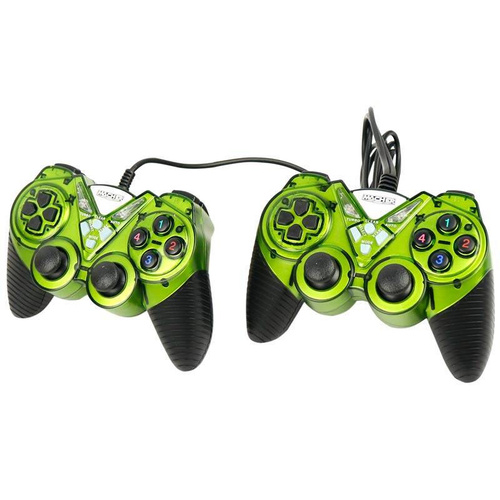 دو دسته ساخته شده از پلاستیک با کیفیت، دارای کابل متصل با رابط USB به طول 140 سانتی متر با پشتیبانی از قابلیت Plug and Play بدون نیاز به نصب نرم افزار سازگار با کامپیوتر و لپ تاپ با طراحی ارگونومیک جهت قرارگیری بهتر در دست ها، دارای 18 کلید، مجهز به شوک موفق به دریافت استاندارد سلامت محصول CE